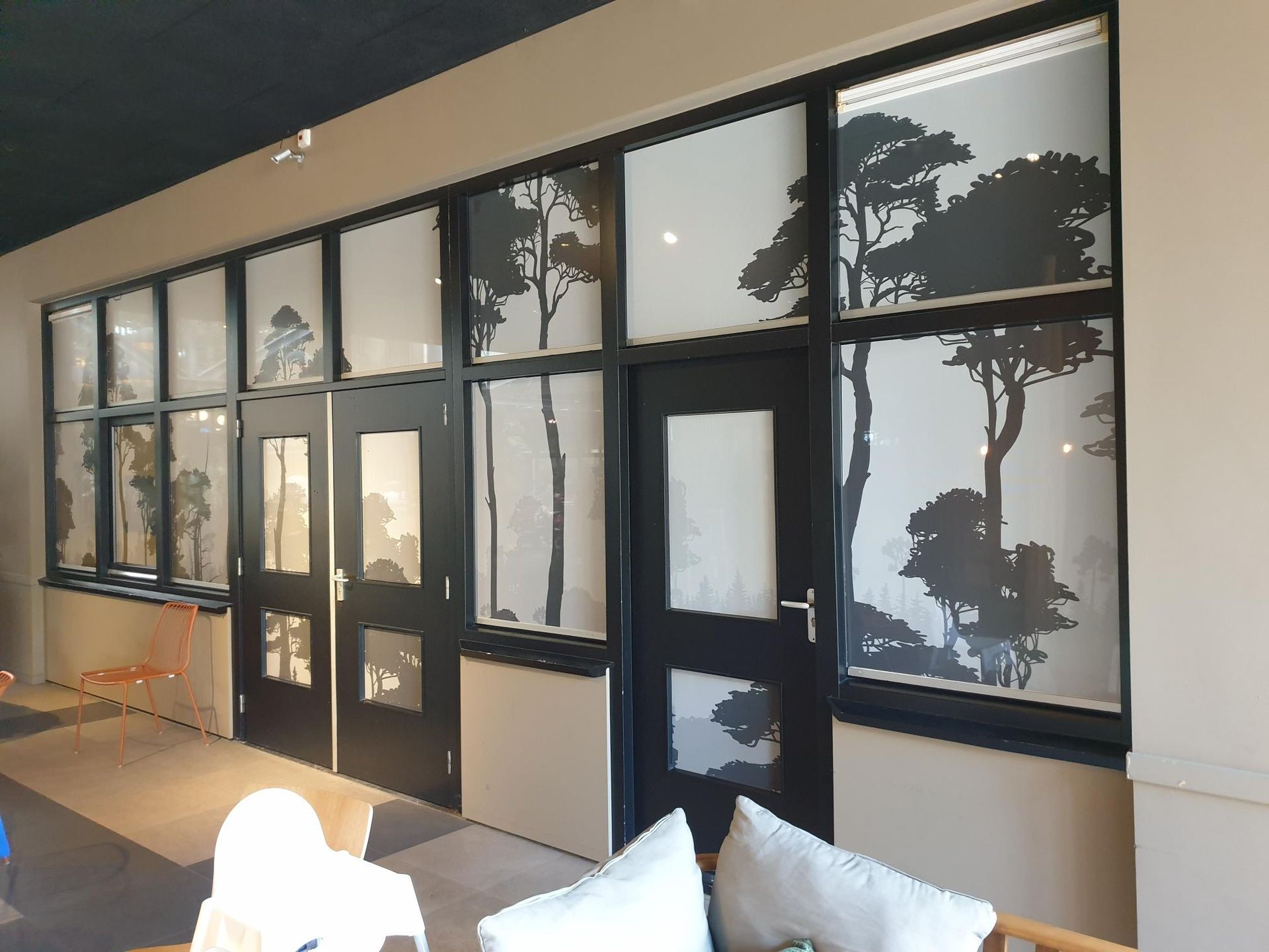 Raamfolie is een dunne laag folie die op glas wordt aangebracht. Het kan dienen voor privacy, zonwering, decoratie of branding. Binnen is het een stijlvolle manier om glasoppervlakken functioneel én aantrekkelijk te maken.